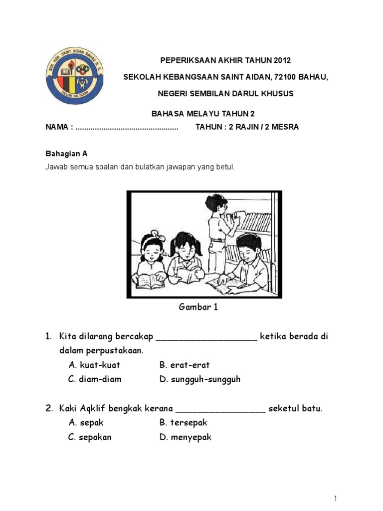Ujian bahasa malaysia tahun 2. Soalan Percubaan Bahasa Inggeris Kertas2 Terengganu 2013. Saya dan huruf kemahiran mendengar dan bercakapband 1.